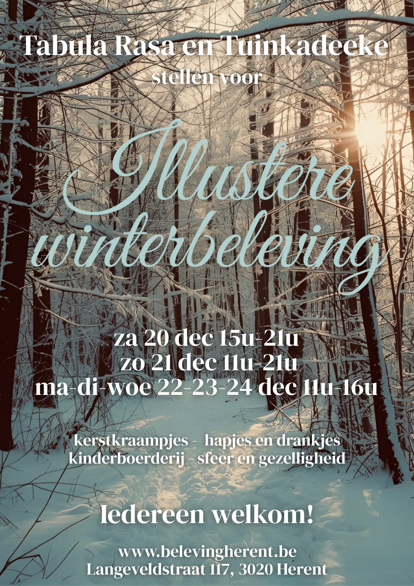 Van 20 tot 24 december nodigen Tabula Rasa en Tuinkadeeke je uit voor de Illustere winterbeleving vol sfeer en gezelligheid.